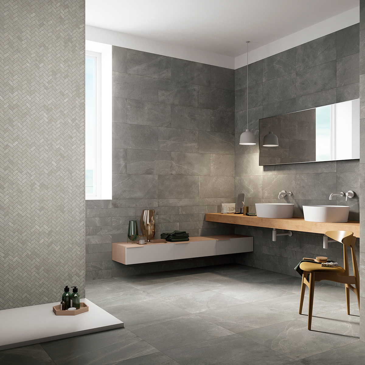 La pureté du design, l’élégance de la couleur. Gentle Stone grès cérame coloré dans la masse. Une collection qui interprète l’élégance et la sobriété de la pierre d’ardoise avec une surface riches en textures de pierre graphiquement différentes et une palette de couleurs neutres et naturelles rendant chacun de ces carreaux uniques. Offerte en cinq couleurs naturelles, White, Ivory, Mud et Black, créant ainsi une variété de choix d’agencements qui seront apporter une touche d’équilibre et donneront une atmosphère de calme.