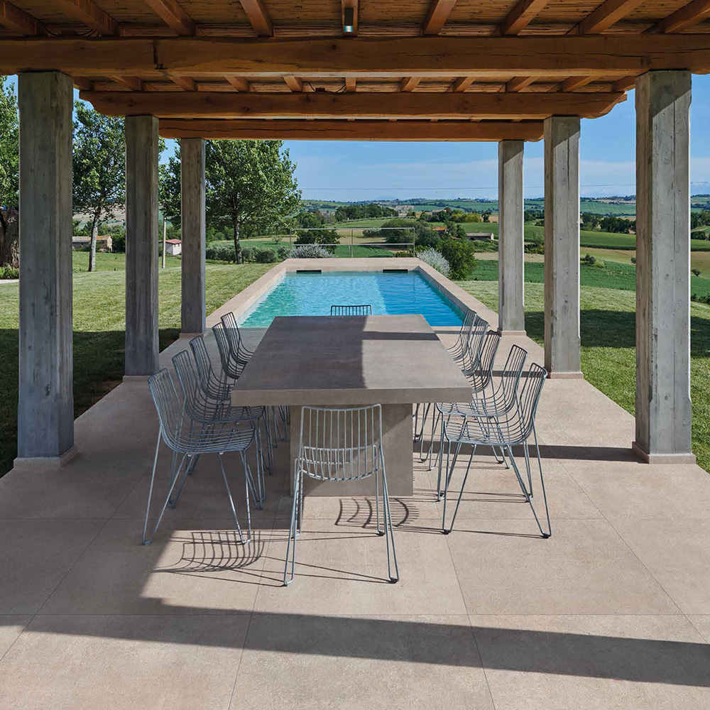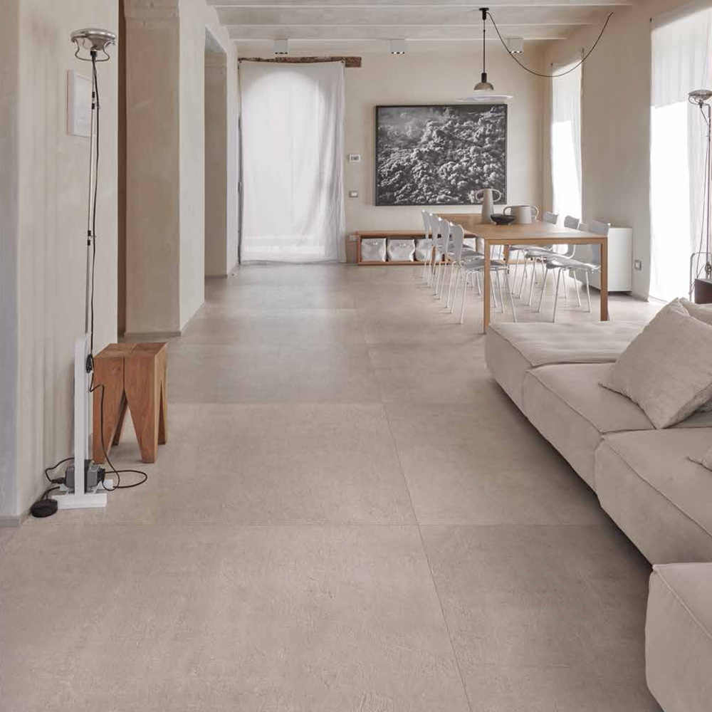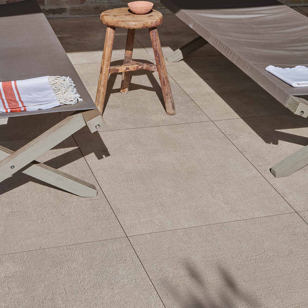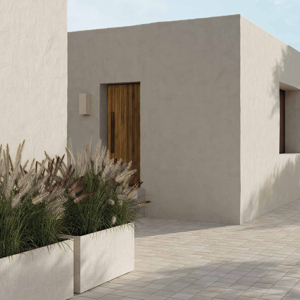 Un grès porcelaine à la manière sensorielle, vivante et riche dont l’effet patiné et imparfait crée la fascination. S’inspirant de l’élément terre, la recherche chromatique définit trois tons allant du blanc de la chaux au noir de la pierre de lave, en passant par la teinte chaude de la corde.
